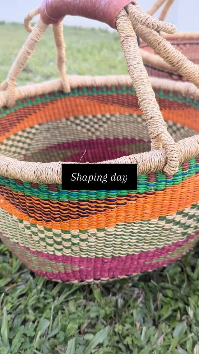 Bolga basket is a traditional handwoven basket made in Bolgatanga, Ghana. Crafted from elephant grass, these baskets are known for their vibrant colours, durability, and versatile use. Each Bolga basket is unique, reflecting the skill and creativity of the artisan who made it.